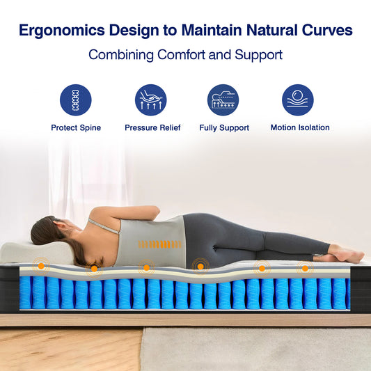 Queen Size Mattress, 12 Inch Individual Pocket Springs Hybrid Memory Foam Queen Mattress in a Box for Pressure Relief, Motion Isolation, CertiPUR-US