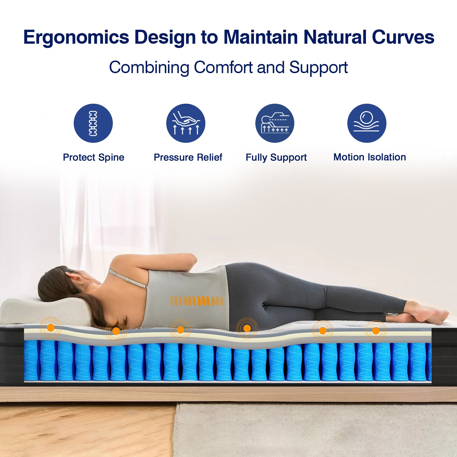 - 【Release Pressure and Sleep Soundly】The perfect combination of independent pocket springs and memory foam can effectively release pressure and relieve fatigue, allowing your body to fully relax, while effectively reducing motion transfer. Even if you or your partner turns over frequently, the other one will not be disturbed. Vantto hybrid mattress bring you a quiet and comfortable night.