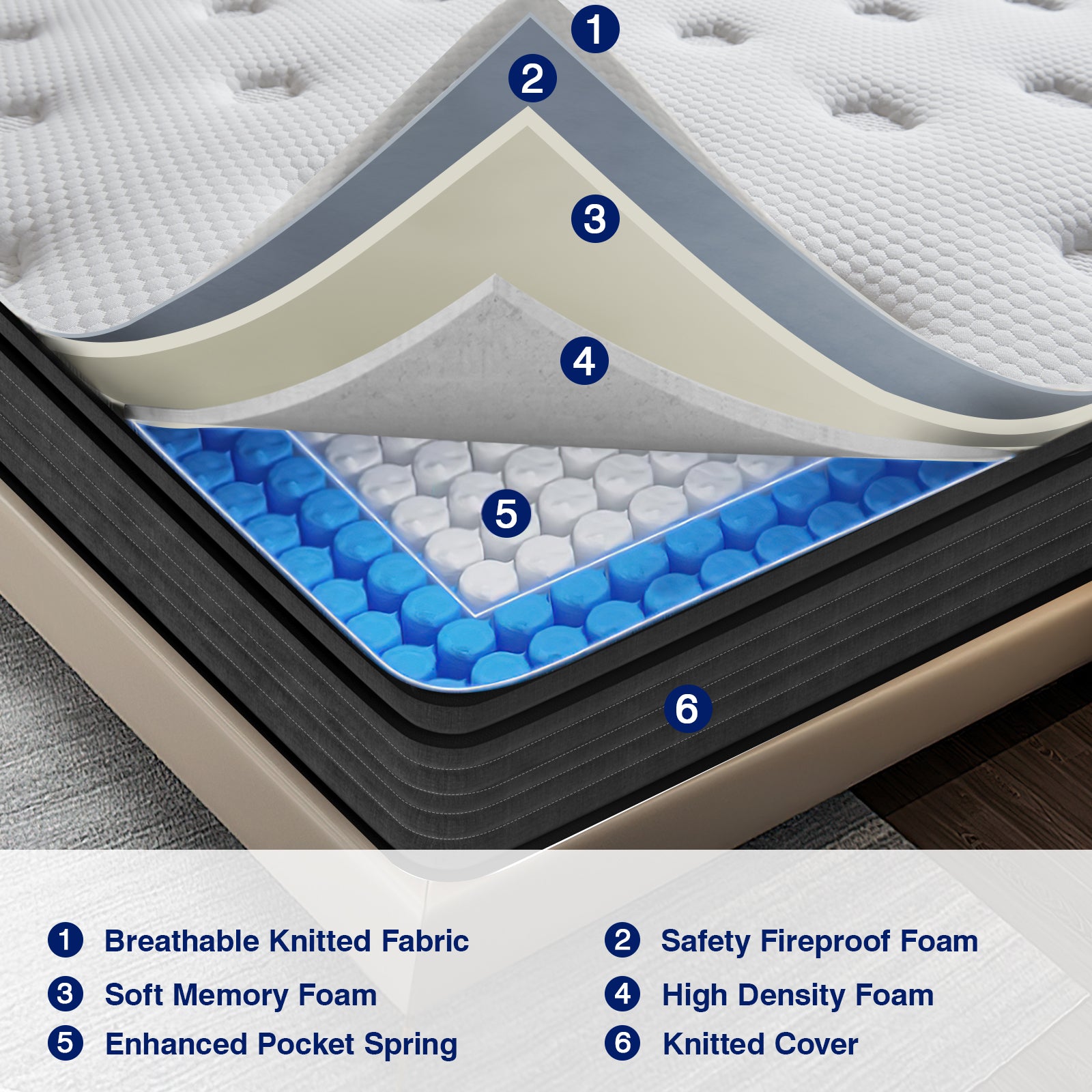 Twin Mattress, 10 Inch Memory Foam Hybrid Mattress, Individual Pocket Springs Mattress with Pressure Relief, Motion Isolation, CertiPUR-US, 100 Nights Trial