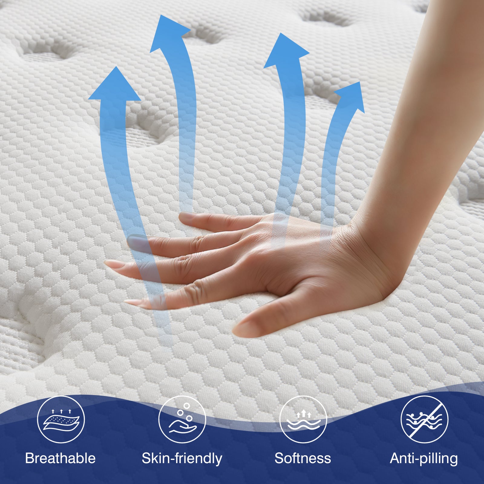 - 【Release Pressure and Sleep Soundly】The perfect combination of independent pocket springs and memory foam can effectively release pressure and relieve fatigue, allowing your body to fully relax, while effectively reducing motion transfer. Even if you or your partner turns over frequently, the other one will not be disturbed. Vantto hybrid mattress bring you a quiet and comfortable night.